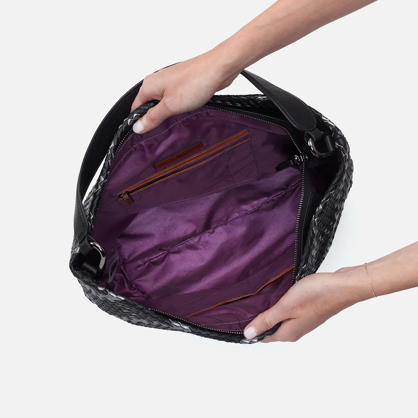 Harley Hobo In Woven Leather - Black Metallic Woven
