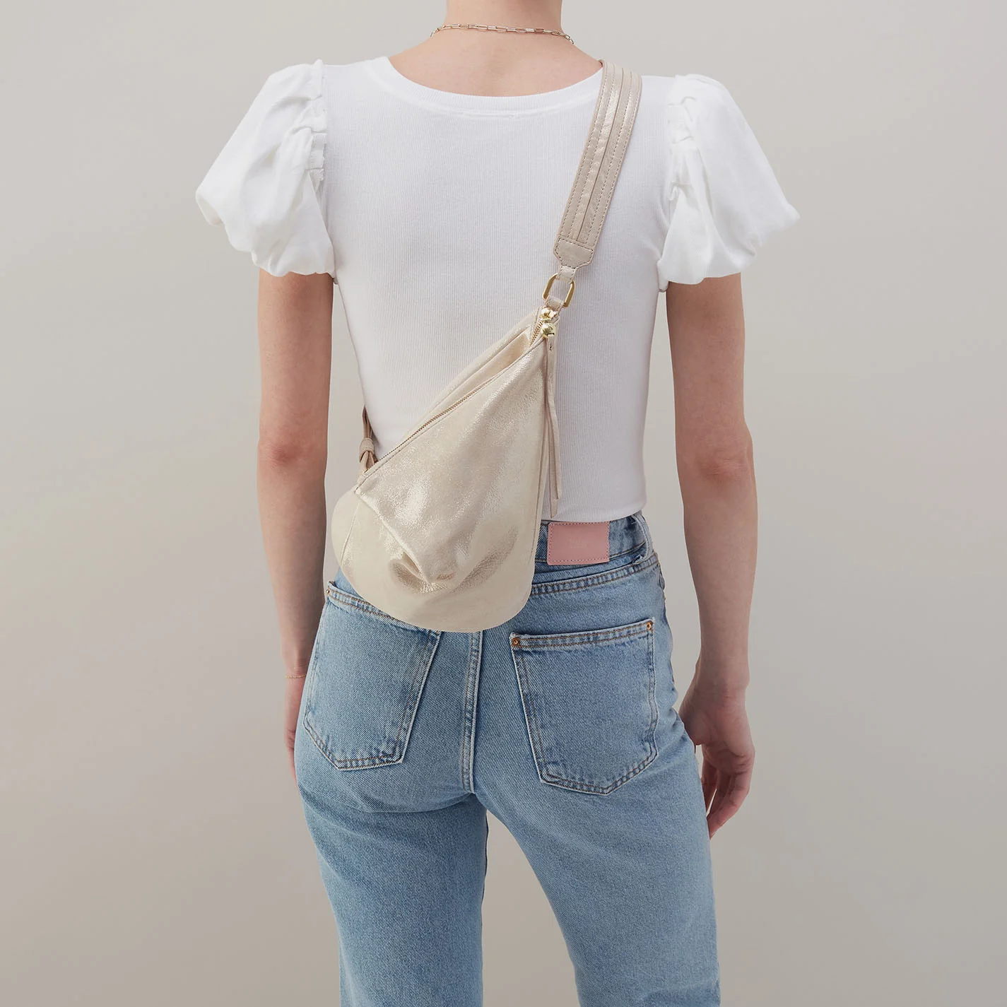 Sway Small Sling In Metallic Leather - Sand Shimmer